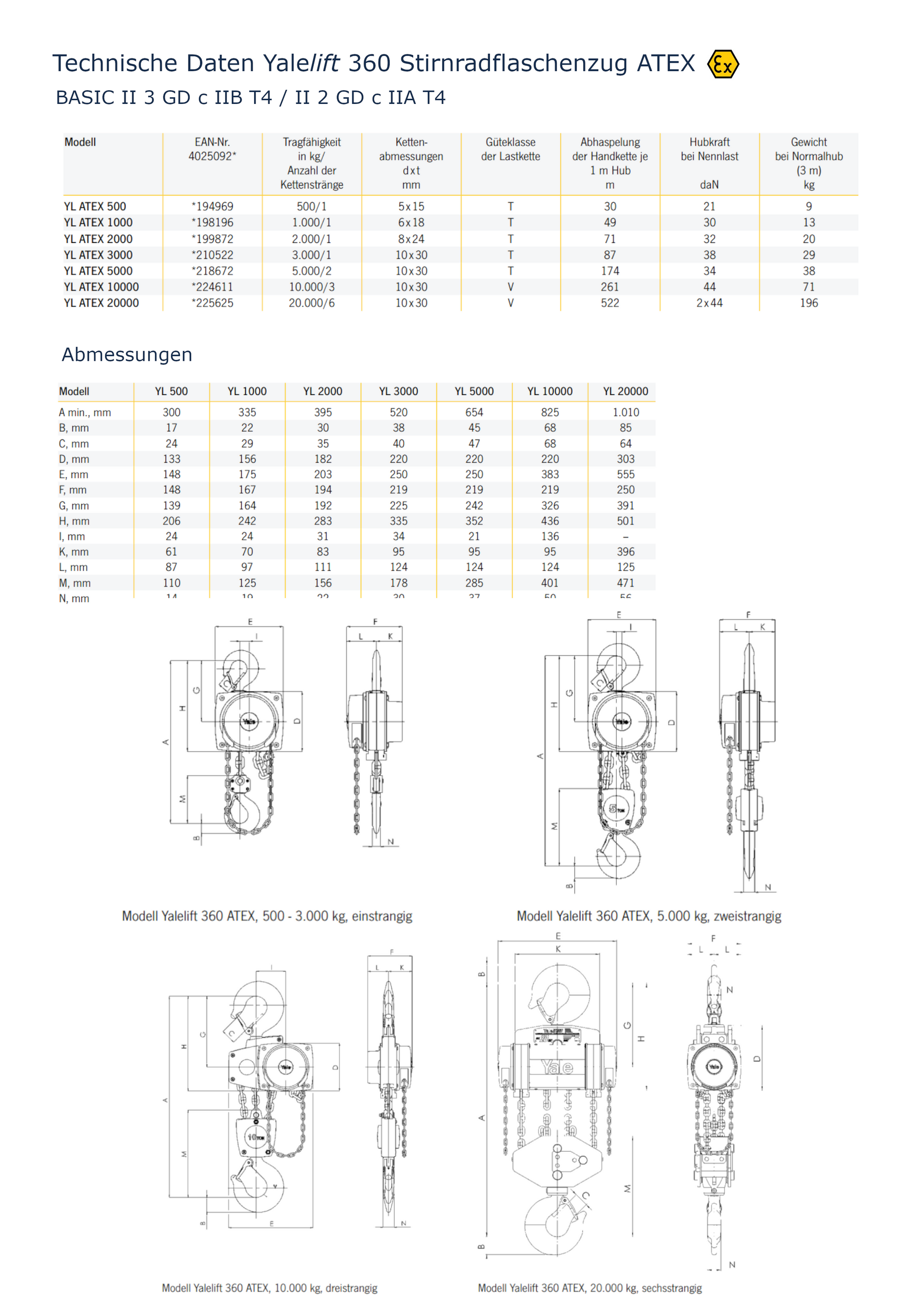 YL ATEX 500 0,5t/1 NH Basic / BASIC II 3 GD c IIB T4 / II 2 GD c IIA T4