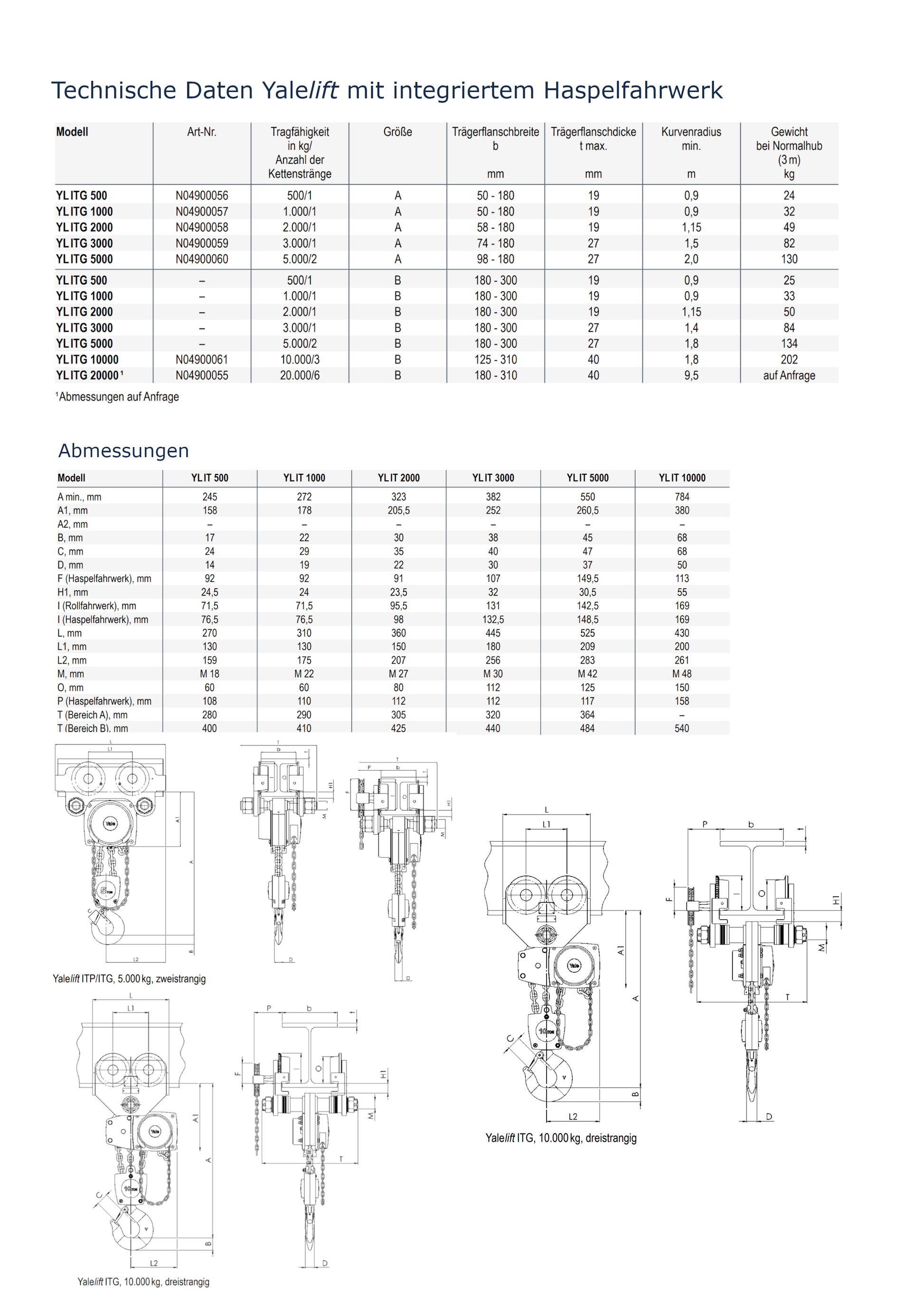 Yalelift 360 Stirnradflaschenzug mit Haspelfahrwerk