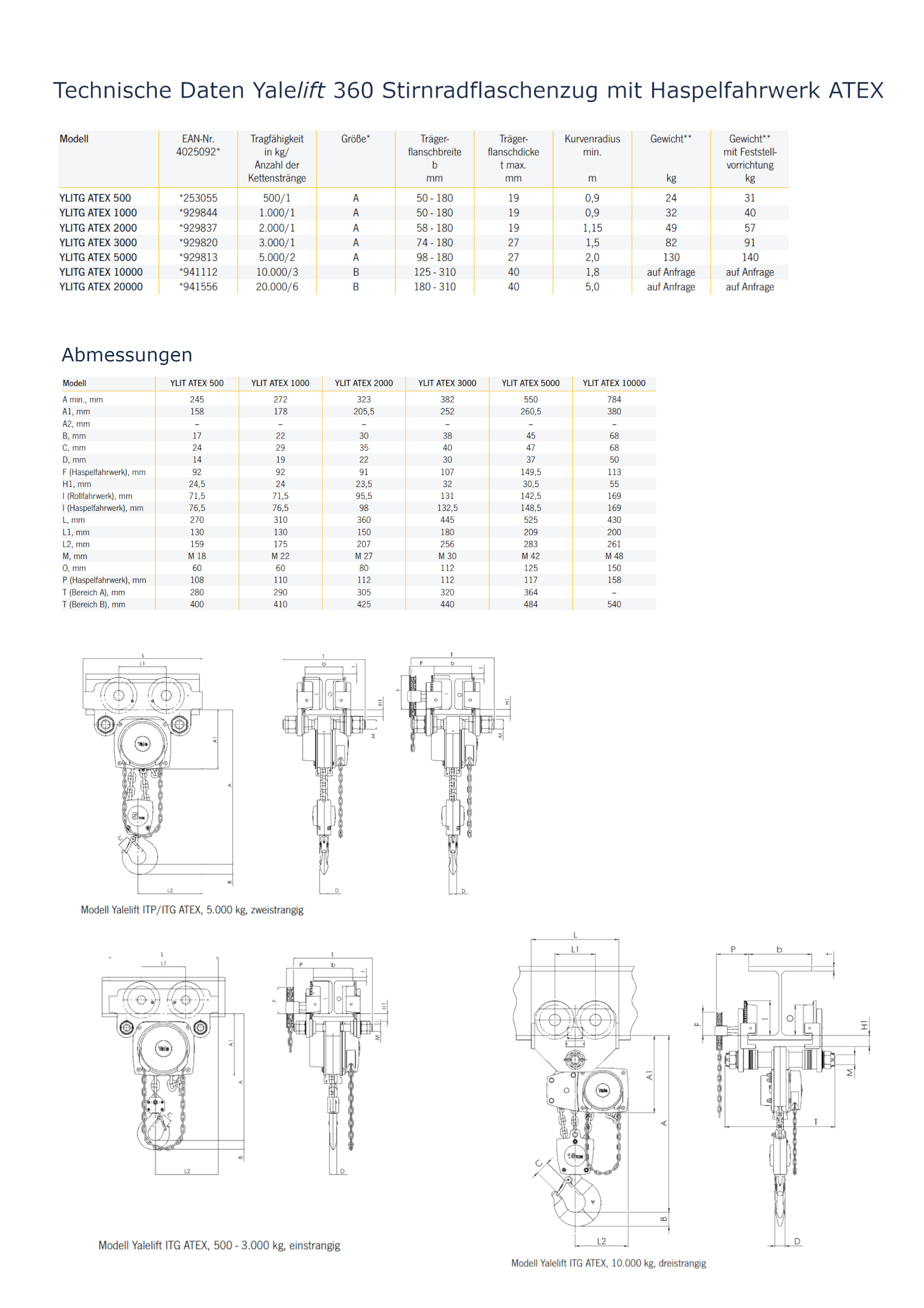 Yalelift 360 Stirnradflaschenzug mit Haspelfahrwerk ATEX