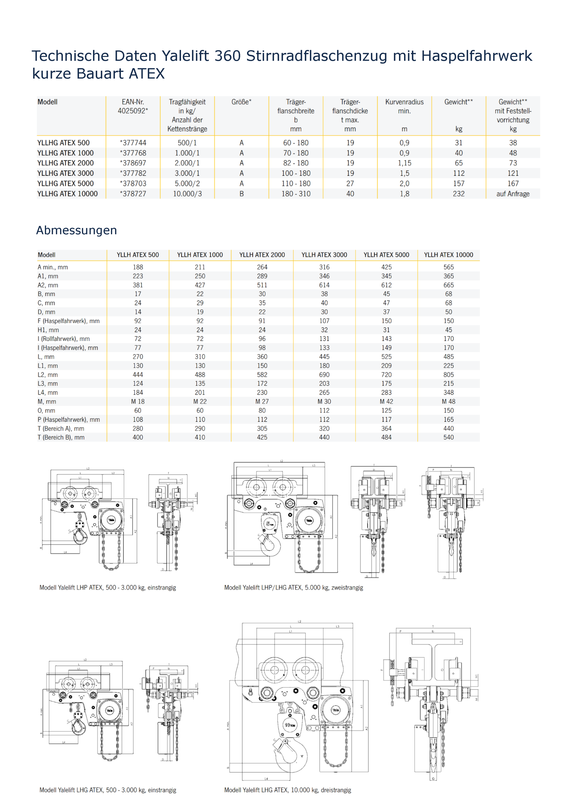 Yalelift 360 Stirnradflaschenzug mit Haspelfahrwerk kurze Bauart ATEX