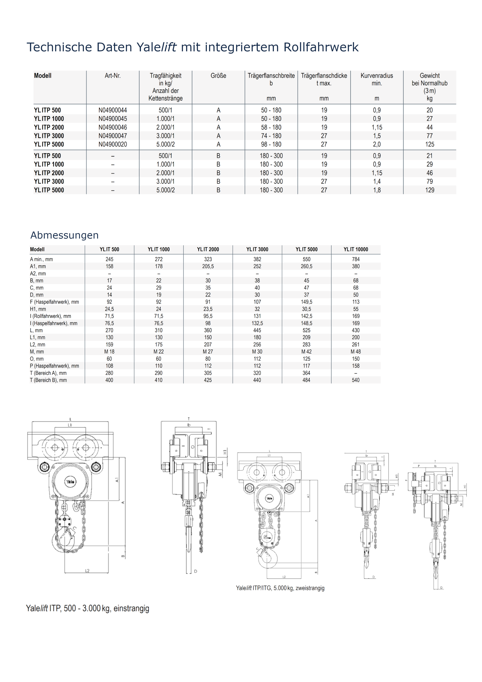 Yalelift 360 Stirnradflaschenzug mit Rollfahrwerk