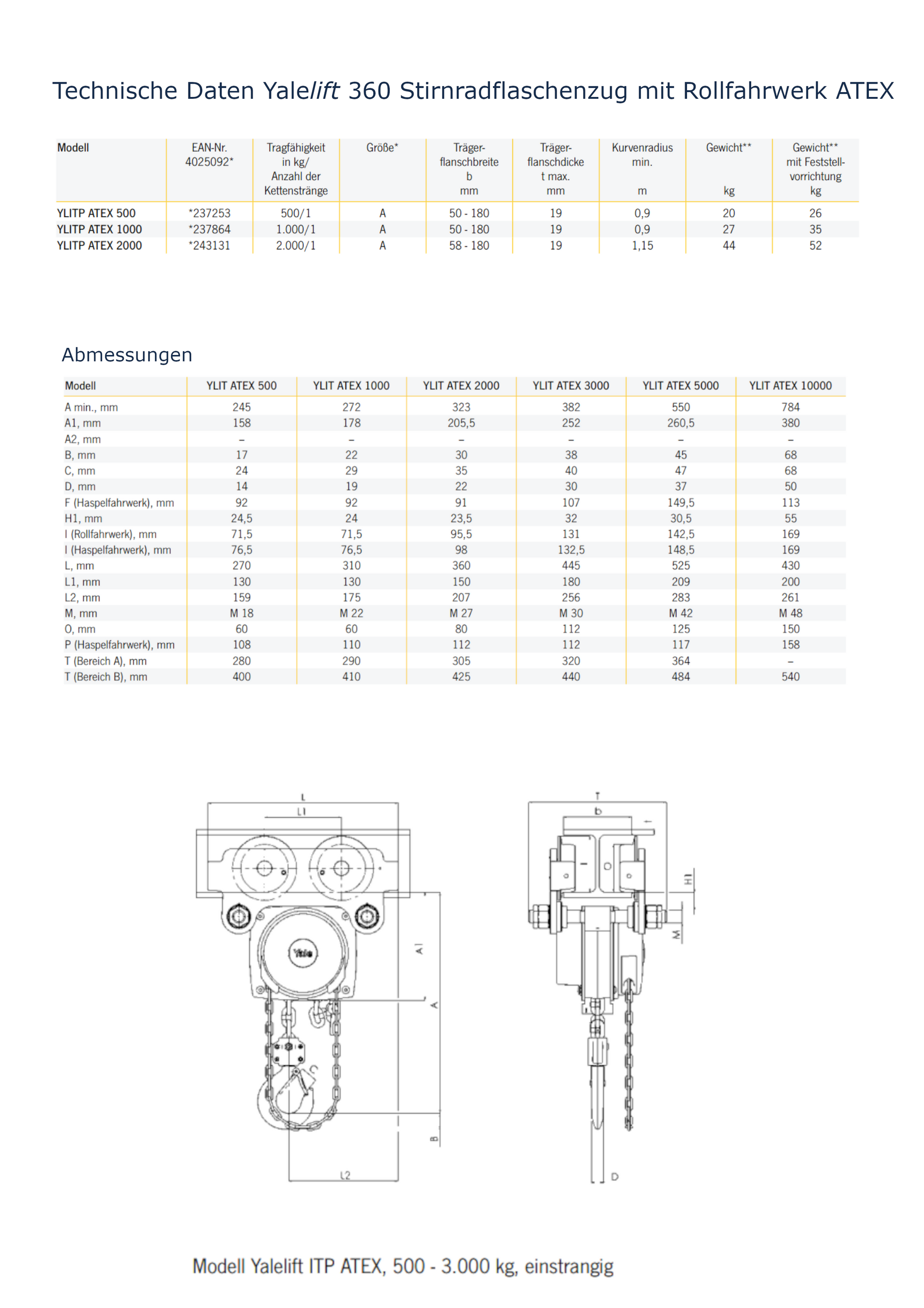 Yalelift 360 Stirnradflaschenzug mit Rollfahrwerk ATEX