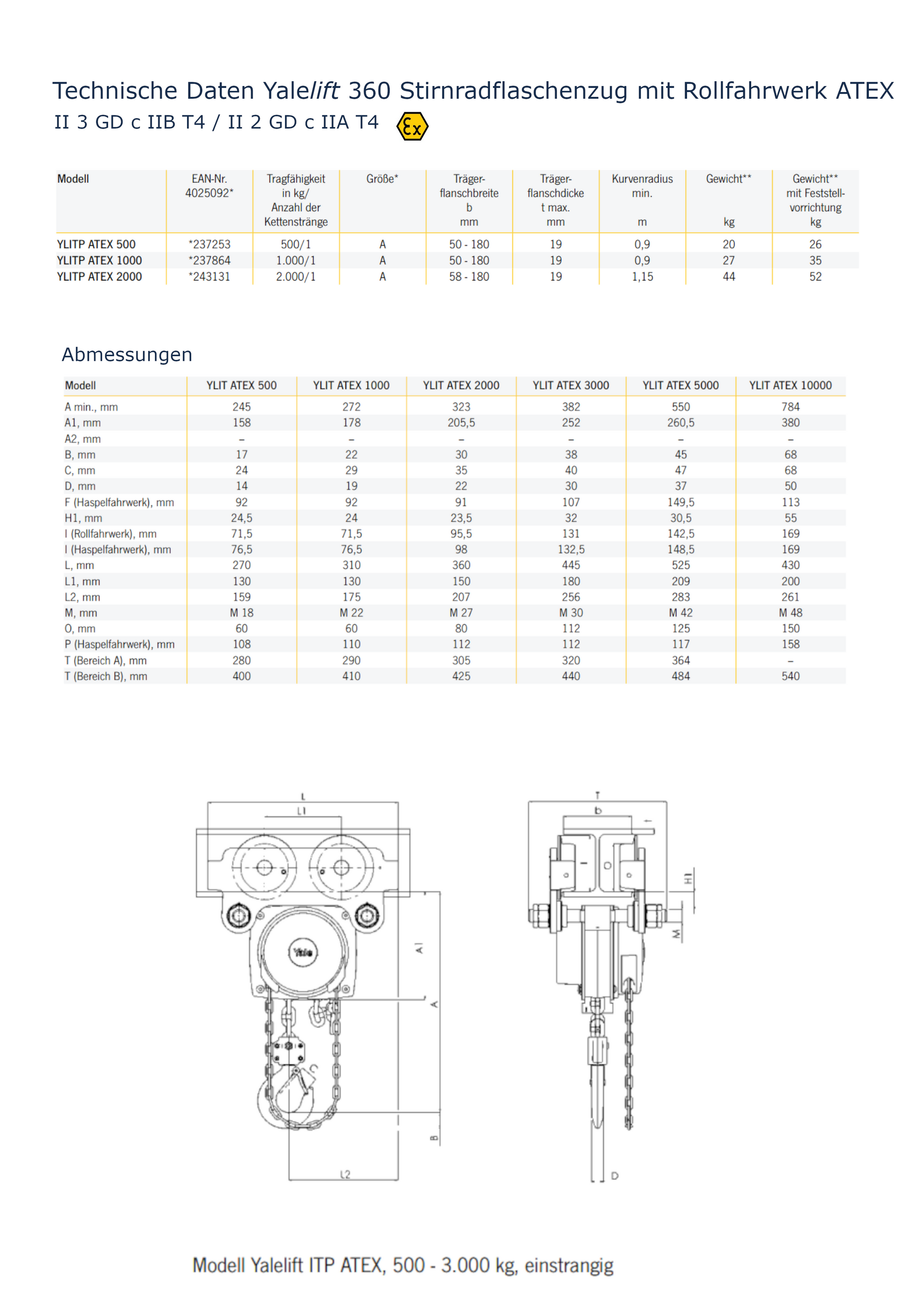 YLITP ATEX 500 0,5t/1 NH Basic / II 3 GD c IIB T4 / II 2 GD c IIA T4